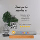 "Améliorez la fonctionnalité et l'esthétique de votre petite entreprise avec notre signature acrylique spécialement conçue pour les avis Google. Doté d'un code QR intégré, vos clients peuvent accéder sans effort au lien pour laisser un commentaire, améliorant ainsi votre réputation d'entreprise. De plus, orné d'une typographie manuscrite qui transmet un message "Merci pour nous soutenir", notre Signe Acrylique ajoute une touche personnelle à chaque interaction. En outre, vous avez la possibilité d'inclure votre logo d'entreprise, renforçant encore l'identité de la marque. Faites de chaque expérience une expérience mémorable et faites la promotion de l'excellence grâce à notre signature acrylique pour les avis d'entreprise Google