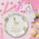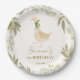 Goose nursery rhymes birthday party monogrammed paper plates template , pastel boho cute goose with a ribbon birthday party personalized paper plates boho birthday party printed plates nursery rhymes party printed plates gender neutral birthday party customized paper plates personalized table decorations goose party supplies