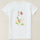 A Ladies' T-shirt with a goose, front and back, setting out on a journey with its belongings tied up in a red and white spotted handkerchief, from watercolour painting by Judy Adamson. Ideal for anyone setting off their travels - eg a gap year. Use this image on the T-shirt of your choice for ladies, men or children.