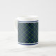 Bone china mug with the Gordon family clan tartan pattern. Traditional vintage Scottish plaid from between 1930 and 1950 in blue, green, and yellow.