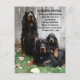 Gordon Setter Generations Peinture Carte Postale. Trois Gordon Setters posent devant une clôture en bois.