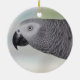 Elongated neck and a beautiful face on this Congo African Grey Parrot against a muted pastel background.