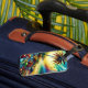 Colourful abstract ocean view, palm trees, beach stones at sunset. Beautiful tropical sunset art.