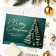 Gorgeous gold foil script on an elegant green background and a Christmas tree that gives the unique illusion of looking 3D complete with a pretty star at the top. A modern handwritten scrawl above your personalized greeting on a modern non photo holiday postcard.