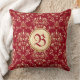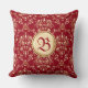 Gorgeous Medieval Gold Damask Carmine Red Monogram Throw Pillow
