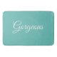 Gorgeous or Your Message, White Script, Light Teal Bath Mat
