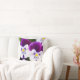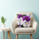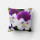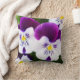 This cute throw pillow features lovely pansies with purple and white petals.