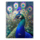 Gorgeous peacock with teal and gold plumage notebook