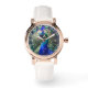 This Watch features a gorgeous peacock design in wonderful teal, royal blue and gold colours. Romantic and elegant motif. Perfect and personalizable gift for any occasion.