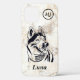 This product is templated so you can easily change the initials to your initials, and your dog's name, by selecting the blue personalize it or edit button. If you'd like assistance changing the initials to your initials/dog's name, or transferring the entire design to another style phone case to fit design properly or another Zazzle product altogether, please message me via Zazzle, or email me at julieartwork4@gmail.com and I'd be happy to help! Also, if you'd like something else drawn and/or designed, personally for you, (I do all kinds of art, and tons of dog art) to put on any Zazzle items, please contact me and I can easily do that for you (usually the same day/or next day of your request). Note: this case has the appearance of marble, but it is printed into the design, so the case will be light and not heavy. Advocating for animals, nature, humour and creating/designing art are my passions. Thanks for checking out JulieArtwork Store and have a great day today!