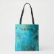 Gorgeous personalized emerald blue swirly marble tote bag
