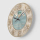 You (or Designer Linda) can change the lovely dusty soft blue green centre accented by the Love Doves joining their lives together as one over the taupe coloured heart. The clock is surrounded with a gentle neutral Taupe Champagne wedding colour with ecru swirls.