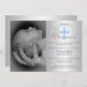 Gorgeous Silver Blue Cross Boy PHOTO Christening Invitation