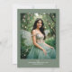 The front of the invitation showcases the event details against a soft background, while the back features a green backdrop designed to hold a personalized photo of the quinceañera. This thoughtful touch provides a special, intimate element to each card, making it a cherished keepsake for your guests.