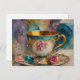 Gorgeous Teacup Mixed Media Collage Painting Postcard
