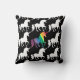 Fun Black and White Rainbow Unicorn Pattern Pillow. Stylish black and white unicorn pattern covers the front and back of this fun pillow. One bright and colourful rainbow unicorn in watercolor brushstroke stands out in the centre on each side. Red, orange, yellow, green, blue, and purple unicorn adds a splash of fun to the monochrome design. Gorgeous, modern and stylish unicorn designs.