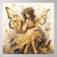 Beautiful image of a Fairy dressed in yellow sitting on a tree stump in the garden. She has lovely flowers in her hair and there is a Monarch butterfly at her feet. This image was created using AI. #generativecontent