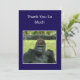 Share your gratitude with this bold and heartfelt “Born to Be Wild” thank‑you card. The front features a centered gorilla wearing a party hat, framed with a clean white border on a deep navy background. The message reads, “Thank you for celebrating with us and making the day so special,” with an editable line below for parents’ names or the birthday child’s name.