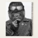 Ce design comprend un gorille habillé d'une veste en cuir, de lunettes et d'un casque.