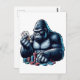 gorilla singe jouer aux cartes poker chips jeu casino art couleur illustration carte postale