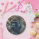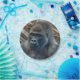 A beautiful close up photograph of a gorilla at the zoo printed on a paper plate.