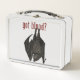 Perfect for a First Aid Kit, this metal lunchbox has a large red cross on one side, and a vampire bat hanging from the words, "Got Blood?" on the other side.