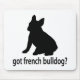Got French Bulldog? Simple and unique design of a French Bulldog, Bouledogue Francais, and Frenchie dog silhouette with the got milk parody statement in bold letters below. Show your love of this dog breed with this bold statement today!