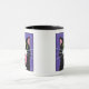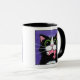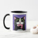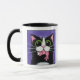 Whimsical cat mug. Sox the cat has his favourite food... shrimp! Original artwork: acrylic on canvas © 2008 Lisa Marie Robinson