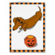 Inside: "Got Treats?" A hopeful wiener dog looks up from an empty pumpkin candy basket, his eyes pleading for you to fill it up with halloweenie bones.