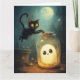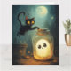 Halloween scene with ghost and black cat.