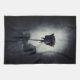 A hand towel with a macabre illustration of a goth /emo style black rose with red dripping blood on its petals. A black grunge background with the centre an off-white colour highlighting this mysterious and interesting fantasy rose.