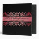 Avery three ring Binder with a touch of Gothic influence, with it's black background and reddish pink foil like damask accents. Great as a wedding scrapbook, organizer, or wedding photo album. Add your name or your own text to personalize just for you or as a gift.
