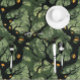 Dark goth garden tablecloth is hauntingly beautiful with moody witchy twisted black branch and forest details on a green background with mysterious creepy macabre yellow and orange eyes. This tablecloth is perfect for October, Halloween, or anyone into goblincore and gothcore aesthetics. Set your table with this spooky fun gothic Halloween design. Upgrade your Halloween decor from plastic disposable tablecloths to a more sustainable option with this high-quality tablecloth that can be reused year after year.