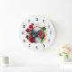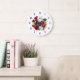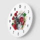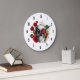 Goth Skull with Red Flowers & Gold Leaves Large Clock