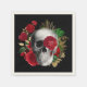 Goth Skull with Red Flowers & Gold Leaves Napkin