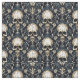 Skulls are surrounded by a stylized blue floral motif on this wonderfully Goth fabric. Perfect for clothing and quilts, for those who walk on the dark side.
