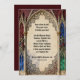 Gothic arches, with floral and lace details, on a red, blue, and green background make a beautiful holiday party invitation. Not so Christmas oriented that it couldn't be used for other celebrations throughout the year.