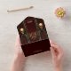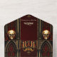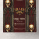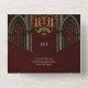 Gothic Archway with Skulls. Set against a mysterious, deep red background, a large Gothic archway rises majestically, decorated with ornate details. The two tall pillars, adorned with delicate carvings, lend the image a poignant elegance. In the middle of the archway shines an impressive stained glass window, the central motif of which is a spider a symbol of patience and creativity. Flanked by two golden skulls, reminiscent of both transience and eternal love, the archway captivates the viewer and promises a celebration full of mystery and fascination.