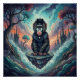 A whimsical baboon sits atop a floating rock, adorned with gothic accessories and surrounded by swirling clouds and eerie castle spires. This surreal illustration blends fantasy, nature, and gothic charm, perfect for lovers of magical creatures and moody dreamscapes. Ideal for prints, gifts, and decor that spark curiosity and conversation. AI
