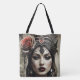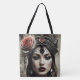 Gothic Beauty Tote Bag. © Dark Heart Desires. A beautiful Gothic woman with a wide headband with a large rose on it.