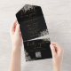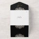 All-in-one Gothic wedding invitation featuring black and gold roses, florals falling across elegant typography. The invitation includes a perforated RSVP card featuring your wedding website's QR code and details. Designed by Thisisnotme©