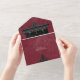 AVAILABLE WITH OR WITHOUT A QR CODE OR WITH OR WITHOUT DINNER SELECTION OPTIONS. Transport your guests to a world of dark, enchanting elegance with our vintage gothic wedding invitation. The deep, aged burgundy wine background sets the stage for a striking contrast, as bold white text emerges from intricate black text boxes. At the pinnacle of this invitation, a three-dimensional gothic border adorned with a regal black raven captures the essence of mystery and romance. The response card, adorned with two intertwining vines of black roses subtly forming a heart, adds a touch of dramatic allure. As a final flourish, the exterior showcases a three-dimensional gothic arch and decorative medallion, ensuring your wedding invitations make a grand first impression. Unleash the magic and set the tone for an unforgettable wedding day. Created by Simply Farmhouse Press.
