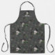 This elegant dark grey gothic Irish wedding "Bride or Die" apron features hand-drawn Irish & gothic themed illustrations in black ink, showcasing a skull and a black crow adorned with green roses, leaves, berries, wildflowers and green clovers. Elegant sage green background.