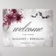 Step into a realm of dark romance with our exquisite gothic or Halloween wedding order of events poster sign that seamlessly blends rustic elegance with a touch of eerie allure. Adorned with intricate pink, burgundy, and black florals, this collection design is a mesmerizing masterpiece that captures the essence of your unique love story. Against a backdrop of burgundy and black distressed hues, the design takes a bewitching turn, featuring captivating details like delicate spiders, mysterious coffins, intricate webs, and soaring bats that dance across the design. This enchanting ensemble balances the beauty of florals with the intrigue of gothic elements, creating a sign that's as unforgettable as your love. Created by Simply Farmhouse Press.