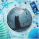 This gothic-style design features a mysterious black cat with glowing eyes, perched beneath a glowing moon while bats circle the misty night sky. The eerie blue tones and shadowed branches create a moody, atmospheric look that blends dark elegance with Halloween charm. Perfect for hosting Halloween gatherings or adding a hauntingly beautiful touch to your party table.