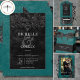 Gothic Black Double Arch Black Roses Teal Wedding Invitation