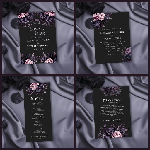This Gothic Black Floral Wedding Menu Card adds a dramatic and refined touch to your reception tables. Featuring a deep black background with elegant dark floral accents, it perfectly complements gothic and moody wedding themes. Fully customizable text allows you to showcase your menu courses with clarity and style. Ideal for candlelit receptions, evening weddings, and alternative celebrations. A sophisticated detail that ties your entire gothic wedding suite together.