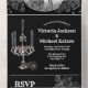 Dark and moody Gothic Wedding invitations. These all in one invitations that come with, a RSVP postcard that your guests tear off and and send. Features a photo of the Bride and Groom, black roses, candelabra, black and white candles. You might want to crop the photo to a horizontal size so it fits easily in the oval. Photo will automatically change to black and white. Envelopes are not needed. Wonderful for a Goth, Halloween, Magic, Mystical wedding!