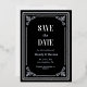 Surprise your friends & family with these elegant Save the Date cards, featuring custom text, black background & silver foil text. Easily add your own details by clicking on the "personalize" option.