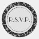 Gothic Black & Grey Flourish Envelope Seals. RSVP SEALS. Great wedding sticker label seals for all your invitation mailings! Featuring a great gothic victorian damask pattern in BLACK, WHITE AND GREY.